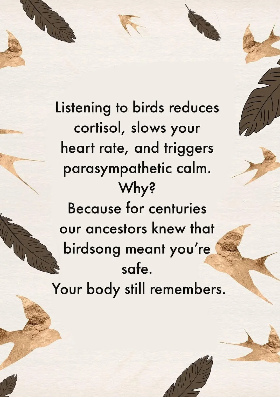 * Enhances feelings of calm and connection, notice the surroundings, trees, sky, sounds
